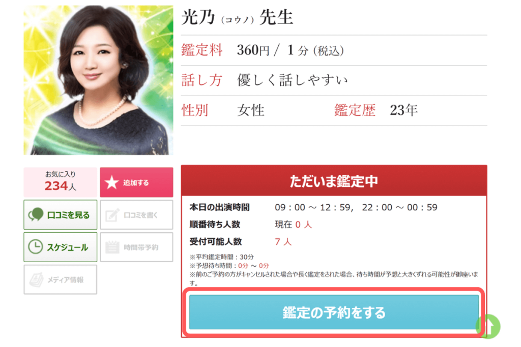 表示された電話番号に電話すると占い師とつながり、鑑定がスタートします。